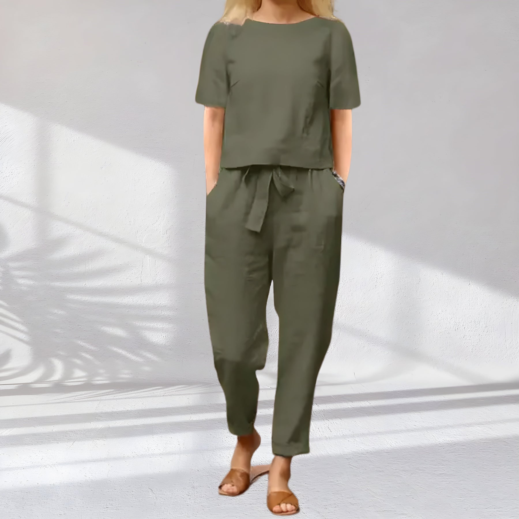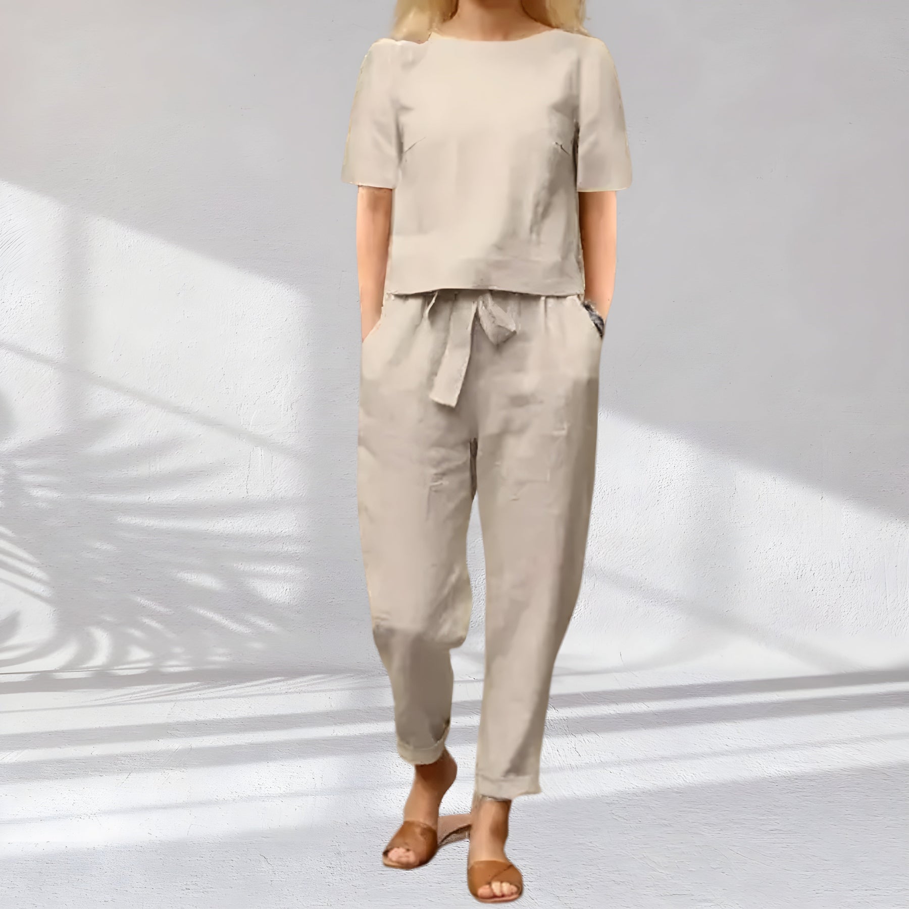 Dagny er settet som gir deg et gjennomført uttrykk – uten at du må gi slipp på komforten. Med en stilren topp og matchende bukse, er dette antrekket perfekt for deg som ønsker å se velkledd ut, enten det er til hverdags eller en spesiell anledning.